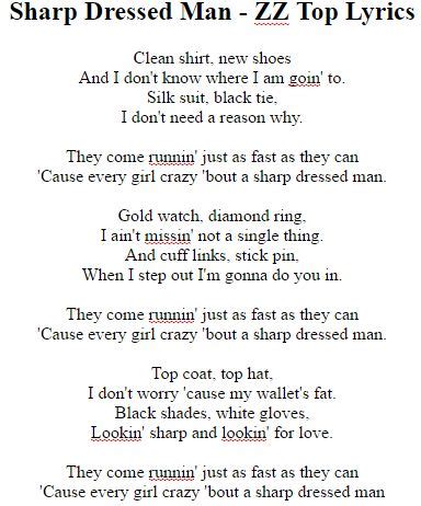 Web they come runnin’ just as fast as they can. Choose one of the browsed sharp dressed man lyrics, get the lyrics and. Web sharp dressed man songtext. I ain't missin' not a single thing.